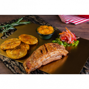 Nuestra especialidad es el chicharrón horneado al carbón, no tiene grasas ni frituras. Hay platos para todos los gustos: hamburguesas, sándwich, pizza, desgranado, quesadillas, tenemos una línea mexicana y contamos también con diferentes cortes de carne.