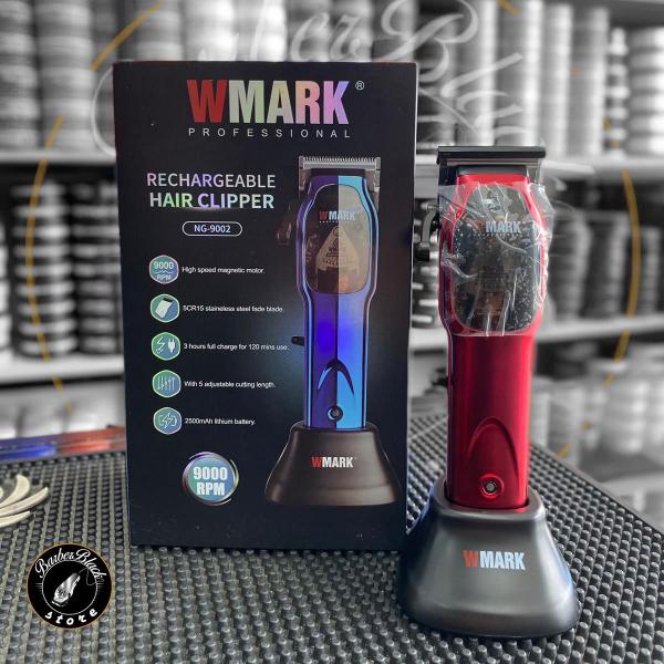 Maquina barbera recargable hair clipper WMARK con base - 9000RPM Color ROJO