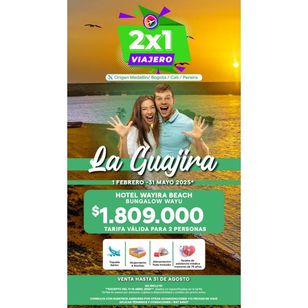 Sumérgete en el desierto mágico de La Guajira, donde el vasto paisaje árido se encuentra con playas exóticas y culturas vibrantes. Explora dunas impresionantes, pueblos indígenas y una biodiversidad única en un destino verdaderamente inolvidable. ¡La Guajira te espera con su esencia inigualable!