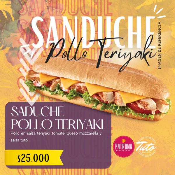 Sumerge tu paladar en el sabor único de nuestro Sándwich de Pollo Teriyaki. Jugosos trozos de pollo marinados en una salsa teriyaki dulce y salada se combinan con vegetales frescos y crujientes, todo envuelto en un pan suave y ligeramente tostado.