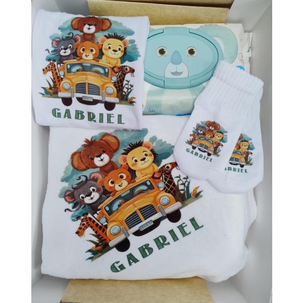 Este encantador conjunto incluye una suave cobija, un mameluco cómodo, medias calentitas y un paquete de pañitos esenciales. Todo lo necesario para mantener a tu pequeño cálido y acogedor en sus primeros días. ¡El regalo ideal para dar la bienvenida a la llegada de un nuevo integrante a la familia!