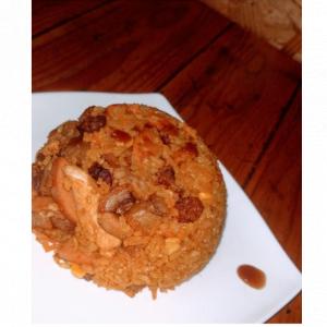 Trocitos de pollo, chicharrón, platanito maduro y maicitos. Viene en presentación: FAMILIAR, MEDIANO, TRIO, DUO, Y PERSONAL.