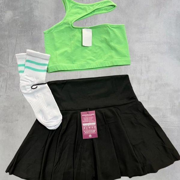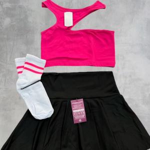Eleva tu estilo deportivo con este conjunto de tres piezas que incluye un top cómodo, una falda de diseño moderno y medias a juego. Perfecto para entrenar o para un look casual, este set combina funcionalidad y moda, brindándote libertad de movimiento y estilo en cada actividad. ¡Exprésate con confianza y comodidad!