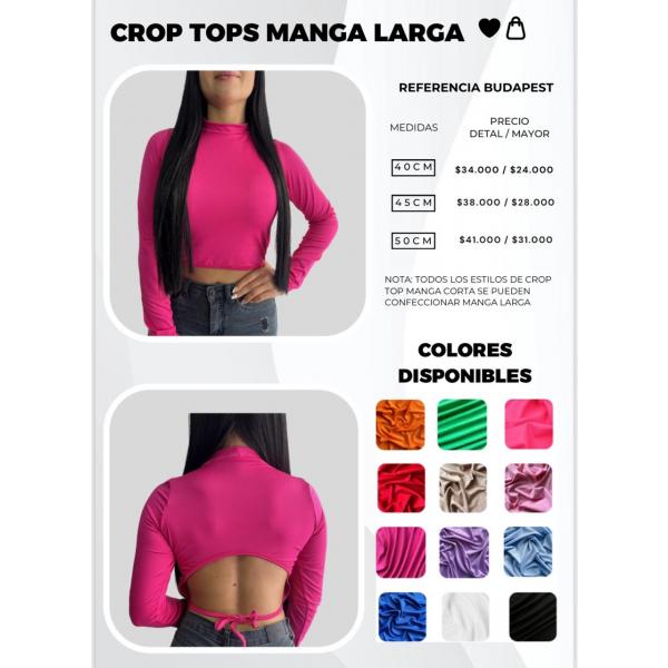 El Crop Top Budapest manga larga es esa prenda infaltable en tu armario: versátil, cómodo y con un diseño que realza tu silueta de forma natural. Confeccionado en tela suave y de excelente ajuste, es perfecto para combinar con jeans, faldas o pantalones de tiro alto. Su corte moderno y femenino lo convierte en la elección ideal para looks casuales o más atrevidos, según cómo lo combines.