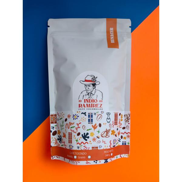 Café Renacer Variedad: Castillo Rosario Proceso: Honey Finca: La esperanza Altura: 1.750 m.s.n.m Origen: Salamina, Caldad- Co Peso Neto: 340g Perfil Sensorial: Miel de maple,Caña de azúcar, Frutos Rojos.