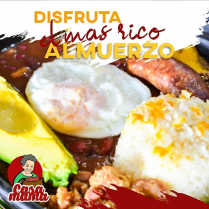 Nuestra bandeja paisa trae: Arroz, frijol, carne molida, chicharrón, chorizo, huevo, aguacate, tajada, jugo.