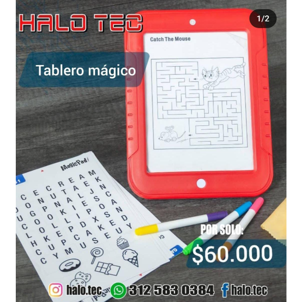 Desata la creatividad con nuestro Tablero Mágico. Superficie magnética para dibujar y escribir sin límites. Perfecto para aprender y jugar. La diversión va directo a tu hogar con nuestro servicio a domicilio, con costo dependiendo del lugar. ¡Transforma tus ideas en realidad fácilmente!