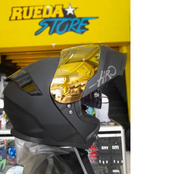 - Certificación DOT americana - Tapizado removible - Coraza resistente - Gafas incorporadas (Negras) - Visor de color