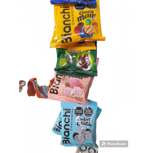 Dulces en diferentes sabores, como choco maní, cookies and cream.