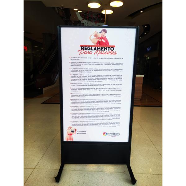 Estructuras publicitarias tipo rompetrafico fabricadas en metal, madera, MDF, aluminio o cartón industrial. Disponibles con ruedas o base fija. Personalízalos según tu marca y úsalo en puntos de venta, ferias o exteriores.