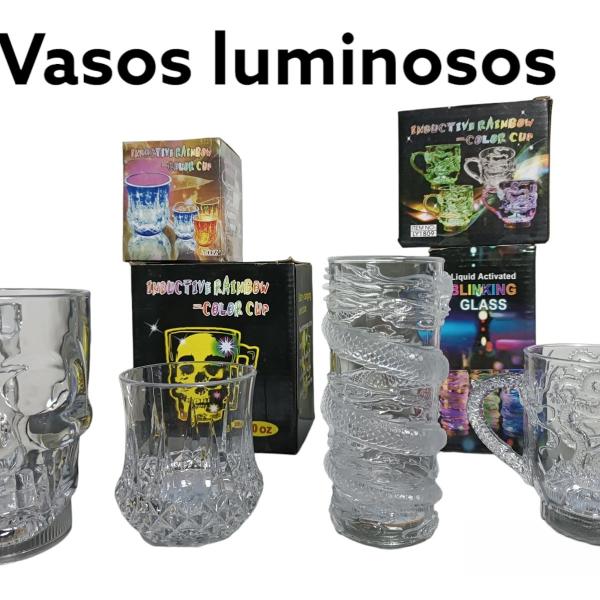 vasos luminosos especial para cautivar la vista encienden con liquido la luz es multicolor varias referencias las calaveras a $20.000 los tipo wiski a$10.000 tipo pocillo $15.000 pagos contra entrega solo venta virtual productos importados