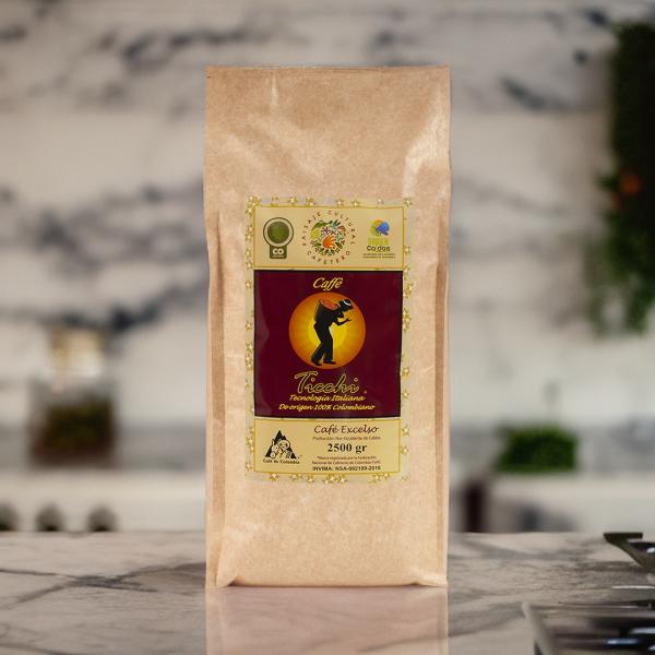 La bolsa de 2500 gramos de café Ticchi ofrece un café Colombiano excelso de exportación, tostado con tecnología italiana. Cultivado en un territorio protegido por la UNESCO dentro del paisaje cultural cafetero colombiano del departamento de Caldas, garantizando una calidad y sabor excepcionales. Presentación especial para negocios.
