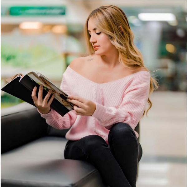 Saco en hilo y lana con cuello V. Talla única, colores disponibles: crema, lila, beige y negro.