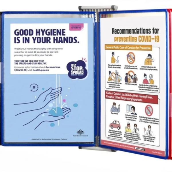 Organizador de documentos que facilita la visualización de estándares de proceso, seguridad, mantenimiento, entre otros. Portadocumentos 10 separaciones en colores individuales para una capacidad total de 20 páginas, fabricados en PVC transparente con bordes de colores reforzados en metal. Base metálica y bolsillos tamaño carta. Bordes de color verde, negro, amarillo, rojo y azul (2 por cada uno). Para hojas tamaño carta 10 bolsillos para 20 páginas de documentos.