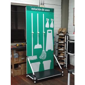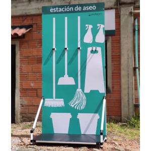 Facilitarás la ubicación de estos elementos con esta ayuda visual, donde tendrás capacidad de más elementos. Cuenta con estructura modeluar y tapones. Ancho 75cm / Profundidad 50cm / Altura 210cm (básica). Capacidad versión básica: 1 escoba, 1 recogedor, 1 trapero Precios desde $640.000 + IVA
