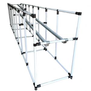 Transporta canastillas o cajas a través de rieles, usando la gravedad, sin consumir energía eléctrica. Ideal para producto en proceso y logística. Longitudes hasta de 6 metros. Longitud 00cm / profundidad 0cm / altura 110cm. Capacidad: 300 kg. Modificable. Precios desde $1.890.000 + IVA