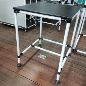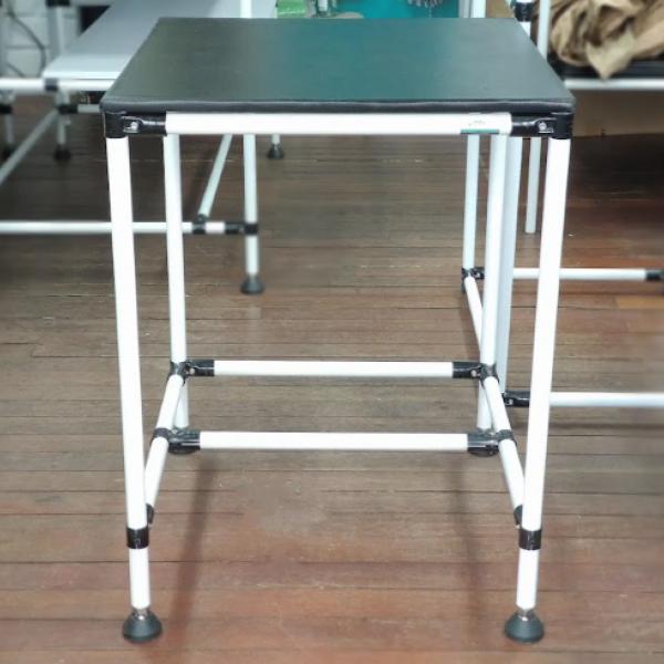 Puesto de trabajo para operaciones simples de ensamble. Fácil de mover de un espacio a otro. Cuenta con madera aglomerada de 15mm y tapones de caucho en las bases. Ancho 60cm / profundidad 60cm / altura 75cm. Capacidad: 70 kg