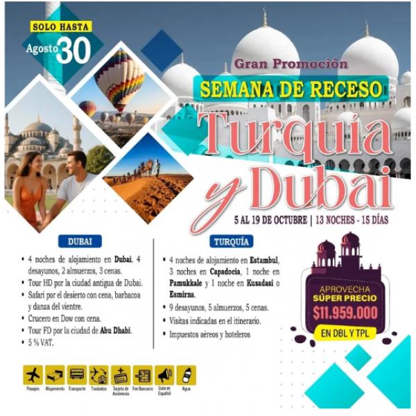 Tour Turquia y Dubai 13 noches 15 días del 5 al 19 de octubre (Reservas hasta el 30 de agosto)