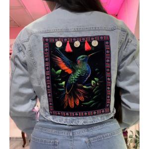 Destaca con estilo único con esta chaqueta denim estampada a mano. Cada pieza es exclusiva, combinando el clásico denim con un toque artístico que la hace perfecta para un look casual y auténtico.