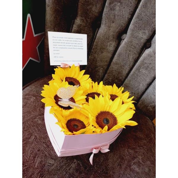 Corazón en girasoles O flores surtidas O rosas 🌹 Acompañada de mariposa, corona 👑 tarjeta y domicilio