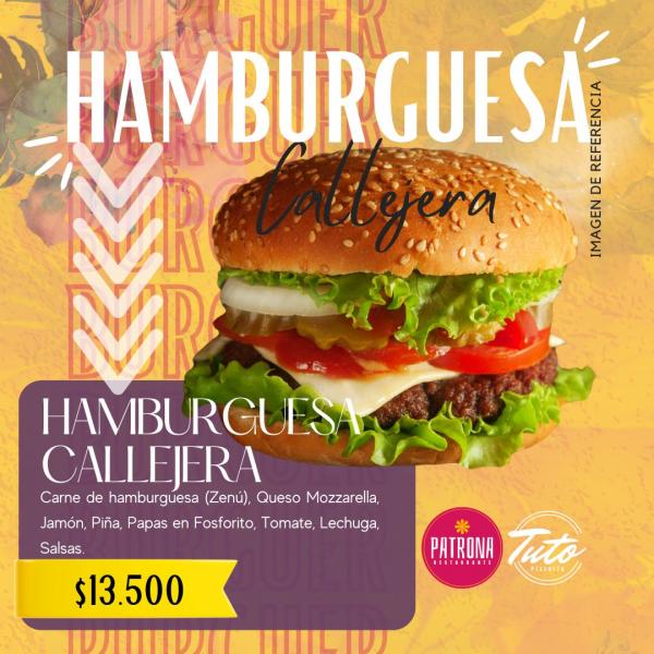 Jugosa y repleta de carne sabrosa, esta hamburguesa se adorna con ingredientes frescos y aderezos que capturan la esencia de la comida callejera.