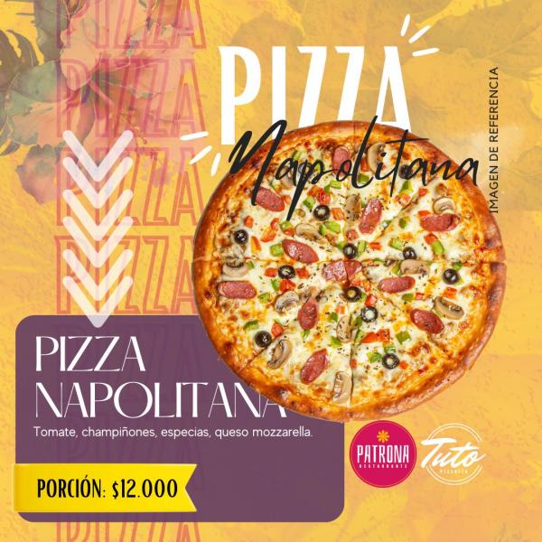 Disfruta de la auténtica tradición italiana con nuestra Pizza Napolitana. Con una base de masa fina y crujiente, esta pizza se cubre con una salsa de tomate fresco y aromático, mozzarella de alta calidad y albahaca fresca.