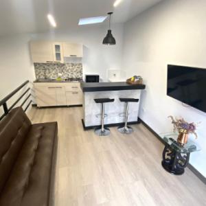 Cama King, sofacama, baño y cocina privada. Cocina dotada con Nevera pequeña, estufa a gas cuatro hornillas, horno microondas y utensilios básicos para preparar y cocinar alimentos. Barra -comedor, en la misma zona de la cocina. Zona de lavado con pequeño lavadero dentro de la cocina . Smart TV, Armario amplio , Wifi, conexión directa a internet , agua caliente.