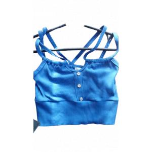 Este top corto de tirantes en un vibrante color azul es perfecto para tus looks veraniegos. Confeccionado en un tejido acanalado, ofrece una textura moderna y casual. La parte frontal presenta una hilera de botones decorativos que le añade un toque clásico y versátil. Los tirantes finos se cruzan en la espalda, proporcionando soporte y acentuando la silueta. Ideal para combinar con faldas, shorts o jeans, este top es una pieza clave para cualquier guardarropa. ¡Luce fresca y a la moda con este t