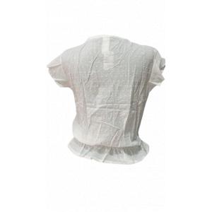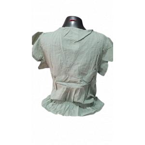 Blusa de manga corta con elegantes frunces en los hombros. Su diseño sofisticado y tejido suave realzan la silueta, ofreciendo un toque de elegancia a cualquier atuendo. Perfecta para combinar con faldas o pantalones, ideal para cualquier ocasión.