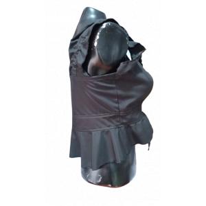 ¡Destaca con este top corsé negro! Con mangas con volantes y un frente con cordones, este diseño añade un toque coqueto y audaz. La cintura peplum realza tu figura, haciendo de esta prenda una elección perfecta para un look atrevido y chic. ¡Hazlo tuyo y roba todas las miradas!