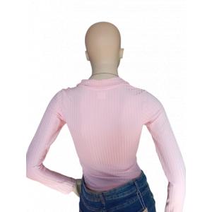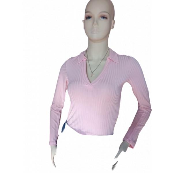 ¡Eleva tu estilo con esta blusa rosa pastel de corte clásico y moderno! Confeccionada en tejido suave que se ajusta cómodamente, presenta un diseño de rayas verticales que estilizan la figura. Perfecta para un look casual o de oficina, esta pieza es versátil y atemporal. Incluye un delicado collar que complementa el escote en V, añadiendo un toque de elegancia sutil a tu atuendo.