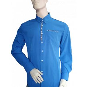 CAMISA DE MANGA LARGA ESTAMADA AZUL38