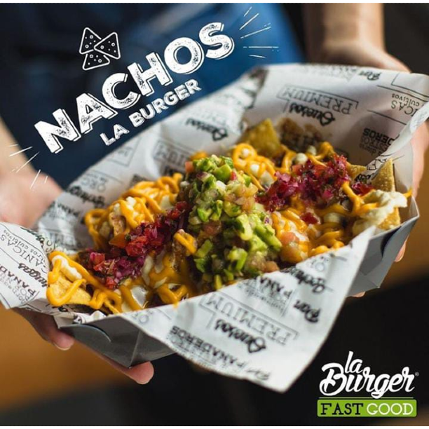Totopos de maiz, chili con carne, salsa de queso cheddar, guacamole, crema agria y pico de gallo.