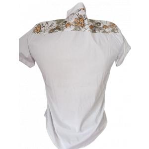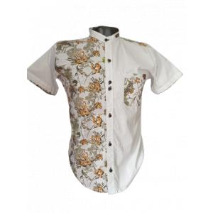 ¡Luce único y con estilo! Nuestra camisa de manga corta combina un diseño bicolor con un estampado floral vibrante. La mitad blanca y la mitad con flores en tonos naranjas, amarillos y verdes crean un contraste perfecto. Ideal para cualquier ocasión casual o formal. ¡Añádela a tu colección y marca tendencia!