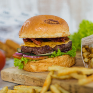 Papas fritas naturales, alioli y salsa brava de la casa.
