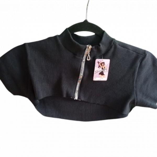 Añade un toque de elegancia y modernidad a tu look con este bolero negro de manga corta y cuello alto. Perfecto para complementar cualquier atuendo, desde un vestido elegante hasta un conjunto casual. ¡Versátil y chic, es un imprescindible en tu guardarropa!