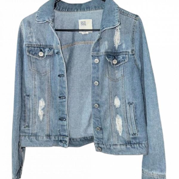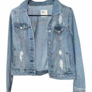 Luce un estilo vintage y moderno con esta chaqueta de mezclilla azul claro, de diseño corto y detalles desgastados. Perfecta para un look casual y desenfadado. ¡Añade un toque de frescura y rebeldía a tu guardarropa con esta prenda única!