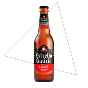 Cerveza importada Estrella Galicia. Proveniente de España y con características de color dorado brillante que parte de una selección de maltas y lúpulos especialmente amargos y su proceso de cocción, fermentación y maduración transcurre a lo largo de 20 días. Esto permite que la cerveza tenga un agradable y característico sabor lupulado. Es perfecta para refrescar. Casa Cervecera Estrella Galicia Color=Dorado Grado de alcohol=5,5% País de Origen= España Presentación=330 ml IBU=16