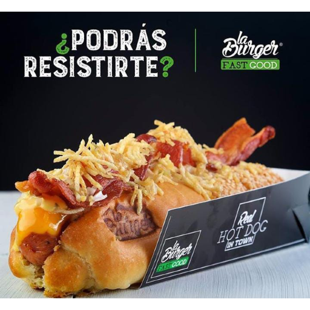 Pan artesanal, salchicha alemana, queso cheddar, tocineta crujiente, cebolla, papa fosforo y salsa Burger.