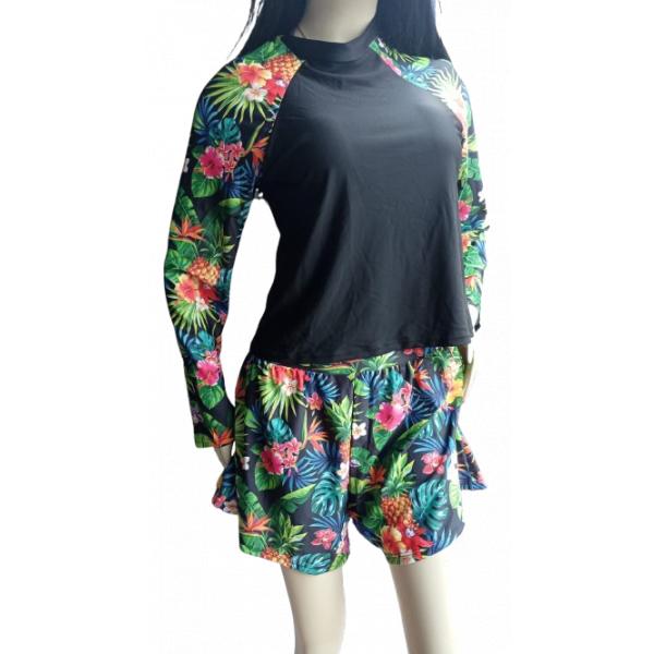 ¡Luce espectacular con este conjunto floral tropical! Con un diseño vibrante de flores y follaje, este conjunto de manga larga y shorts es perfecto para cualquier ocasión. Disponible en varios colores, puedes elegir el que mejor se adapte a tu estilo. ¡Añade esta pieza versátil y colorida a tu colección y destaca con frescura y elegancia!