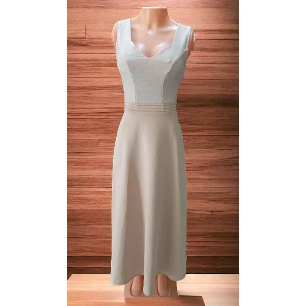¡Deslumbra con este vestido elegante y sofisticado! Con un corpiño adornado con detalles brillantes y una falda ligera, este vestido es perfecto para cualquier ocasión especial. Su diseño sin mangas y su corte a la rodilla te harán lucir radiante y a la moda. ¡Añade un toque de glamour a tu guardarropa con esta pieza única!