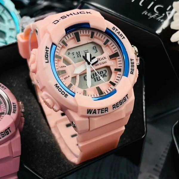 “¡Descubre el estilo y la funcionalidad en un solo reloj! Este reloj rosa combina un diseño moderno con múltiples funciones como luz, cronómetro y resistencia al agua. Perfecto para quienes buscan un accesorio que sea tanto elegante como práctico.