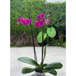 Orquídea phalaenopsis con 2 varas de flores. Matero transparente básico.