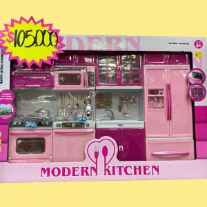 Hermoso set de cocina moderna con 3 modulos acompañado de varios accesorios, deja que tu hija disfrute de esta hermosa cocina siendo un perfecto regalo para niñas.