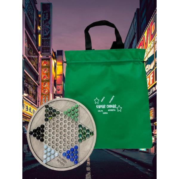 Las damas chinas en juego para un mínimo de cuatro personas , el juego esta conformado por un tablero en madera , las canicas en diferentes colores y las presentación es en bolsa biodegradable para guardarlo fácilmente.