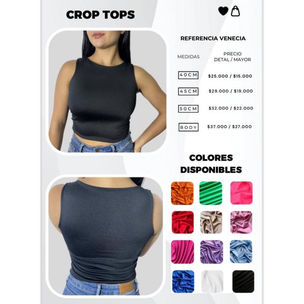 El Crop Top Venecia es esa prenda infaltable en tu armario: versátil, cómodo y con un diseño que realza tu silueta de forma natural. Confeccionado en tela suave y de excelente ajuste, es perfecto para combinar con jeans, faldas o pantalones de tiro alto. Su corte moderno y femenino lo convierte en la elección ideal para looks casuales o más atrevidos, según cómo lo combines.