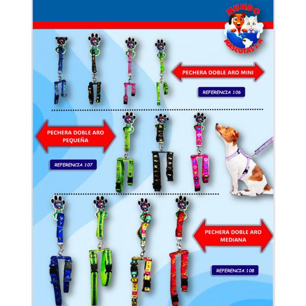 accesorio diseñado para brindar mayor control y seguridad durante los paseos, especialmente en perros que tienden a jalar o que están en proceso de entrenamiento. Este tipo de arnés cuenta con dos anillos en forma de "D" uno en el pecho y otro en la espalda, lo que permite una distribución equilibrada de la presión y facilita la corrección de comportamientos no deseados sin causar molestias al animal.