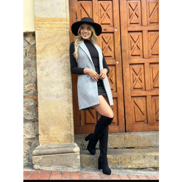 Este chaleco gris de paño es el toque de estilo que todo outfit necesita. Con un corte largo y elegante, es perfecto para usar sobre vestidos, blusas o incluso un look más urbano. Su textura suave y estructura ligera lo hacen cómodo, pero sin perder ese aire sofisticado. Viene en talla S/M, ideal para ajustarse con gracia a diferentes siluetas.