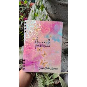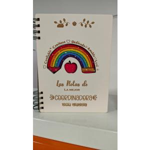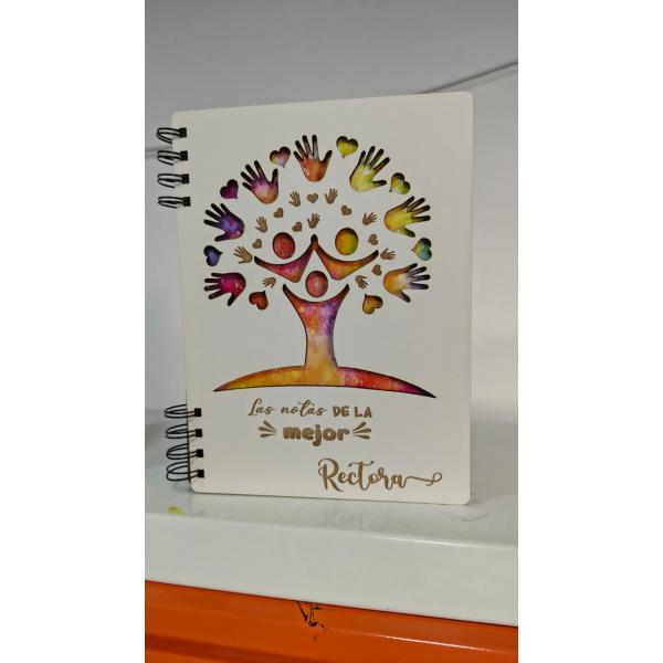 Agendas personalizadas, de madera, grabado en madera, recubrimiento holografico, hojas personalizadas en papel reciclado amigable con el medio ambiente.