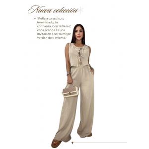 set de dos piezas, confeccionado en una tela corrugada liviana y fresca, es perfecto para lucir impecable y sentirte cómoda durante todo el día. Su diseño moderno incluye un top con ajuste frontal tipo corset y pantalón de pierna ancha, ideal para estilizar la figura sin sacrificar el confort. Disponible en dos colores versátiles: un delicado rosado y un elegante beige, que se adaptan a cualquier ocasión, desde una salida casual hasta una reunión especial. ideal para talla 10,12,14